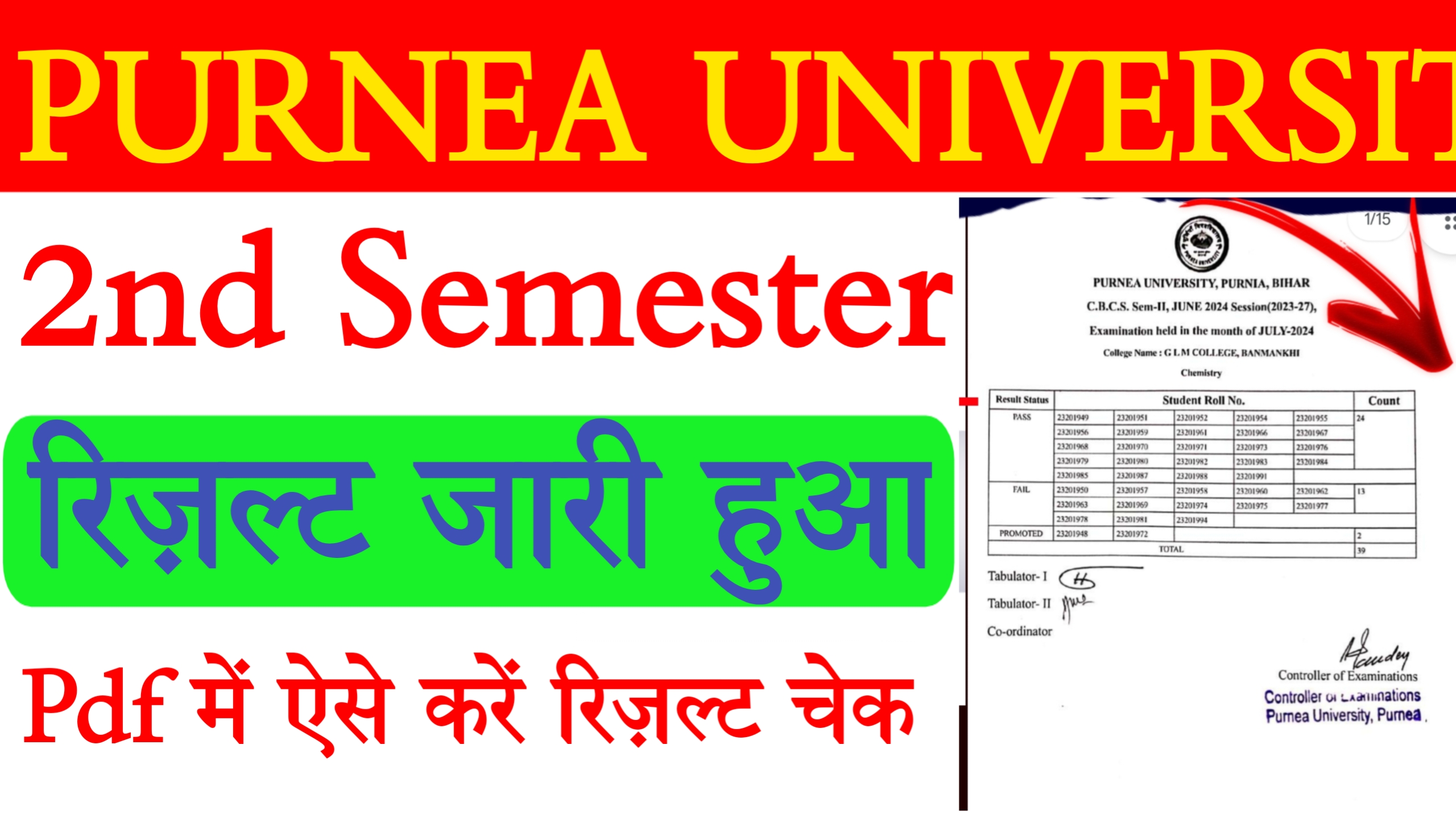 पूर्णिया विश्वविद्यालय UG 2nd सेमेस्टर रिजल्ट 2025 सेशन 2024-28 के UG छात्रों के लिए। कुल 1 लाख+ छात्र।