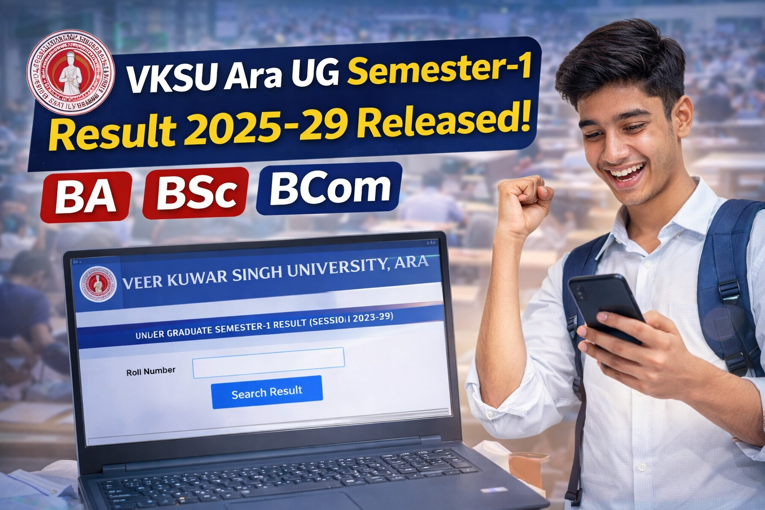 Veer Kunwar Singh University (VKSU), Ara बिहार की प्रमुख विश्वविद्यालयों में से एक है। हर साल यहाँ हजारों छात्र BA, BSc और BCom जैसे स्नातक (UG) कोर्स में एडमिशन लेते हैं। सत्र 2025-2029 के छात्रों ने हाल ही में UG Semester-1 Exam दिया था और अब उन्हें अपने Semester-1 Result का इंतजार था।